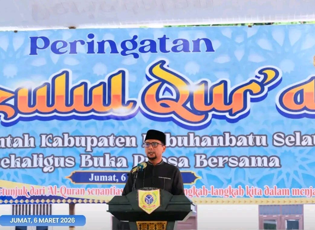 LABUSEL | Pemerintah Kabupaten Labuhanbatu Selatan (Labusel) menggelar peringatan Nuzulul Qur’an 1447 Hijriah yang dirangkai dengan kegiatan buka puasa bersama di Pendopo Rumah Dinas Bupati Labusel, Jumat (6/3/2026).