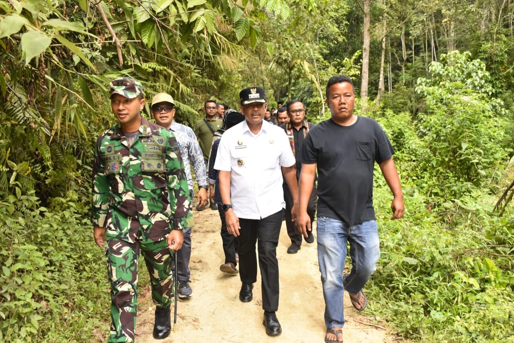 Bupati Madina H. Saipullah Nasution bersama Dandim 0212/Tapanuli Selatan Letkol Arm Delli Yudha Adi Nurcahyo didampingi Pj. Sekda Drs. M. Sahnan Pasaribu, Kepala Dinas Pekerjaan Umum dan Penataan Ruang (PUPR) Ir. Elpi Yanti Harahap, Kepala Dinas Komunikasi dan Informatika Azhar Paras Muda Hasibuan, Camat Panyabungan Miswar Husin Pulungan, dan Danramil 13 Panyabungan Kapten Inf. Abdul Kodir Harahap meninjau jalan yang hendak dibuka tersebut pada Kamis (7/08/2025).