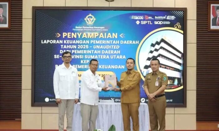 Laporan keuangan tersebut diterima oleh Kepala BPK RI Perwakilan Sumut, Paula Henry Simatupang S.E., M.Si., Ak., CA, CFrA, CPA (Aust), CSFA, ACPA, GRCP, GRCA, ERMAP.
