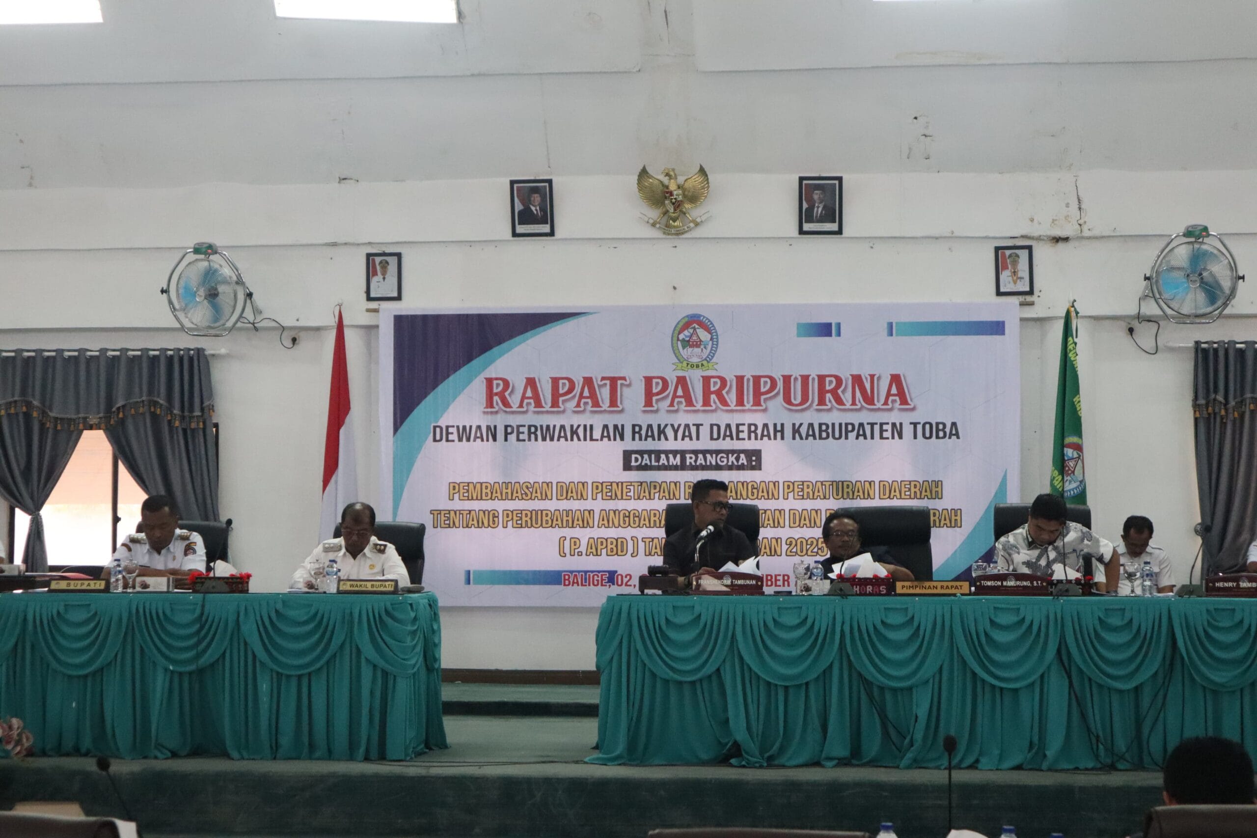 Ranperda Tentang Perubahan Anggaran Pendapatan dan Belanja Daerah (P-APBD) Kabupaten Toba Tahun Anggaran 2025 disahkan menjadi Perda Tentang Perubahan Anggaran Pendapatan dan Belanja Daerah (P-APBD) Kabupaten Toba Tahun Anggaran 2025.