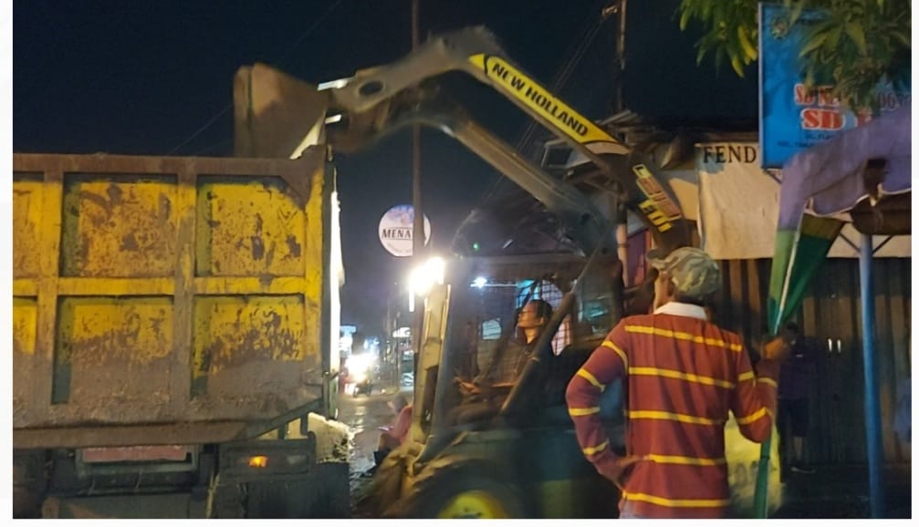 MEDAN I Tumpukan material tanah berlumpur bekas galian parit proyek kelurahan di Gang Ipres Kelurahan Tanjung Selamat Kecamatan Medan Tuntungan akhirnya diangkut mobil truck milik Pemerintah Kota Medan, Sabtu (18/12/2021) sekitar pukul 01.00 WIB dini hari.