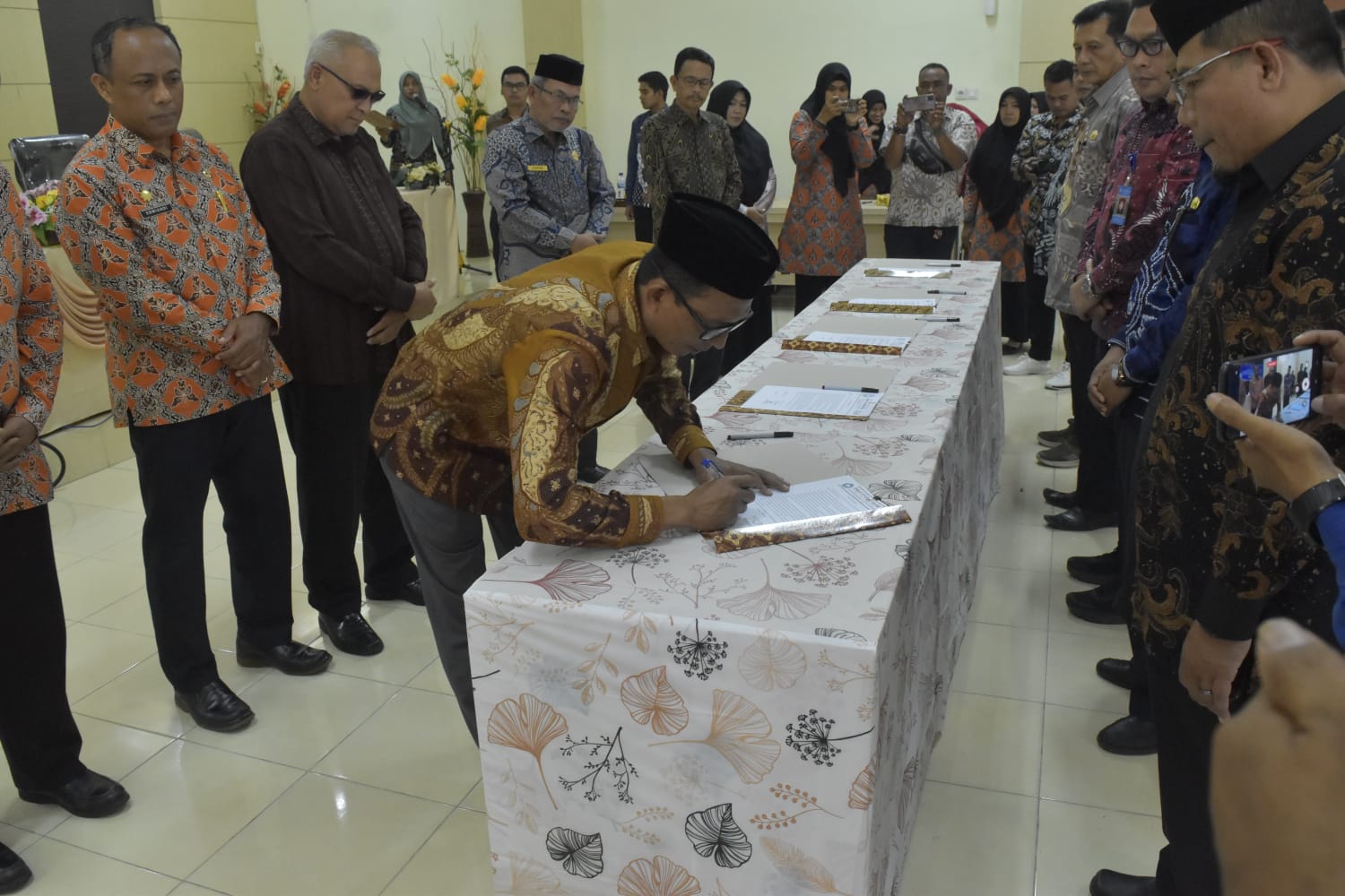 ACEH SELATAN | Pejabat eselon II (Kepala Dinas) dan eselon III (Camat) di lingkungan Pemerintah Kabupaten Aceh Selatan serentak melakukan penandatangan dokumen perjanjian kinerja serta fakta integritas di hadapan Bupati Aceh Selatan beserta para Asisten Setdakab dan Staf Ahli Kepala Daerah, di Aula Bappeda Lt. III, Kamis (26/1/2023).