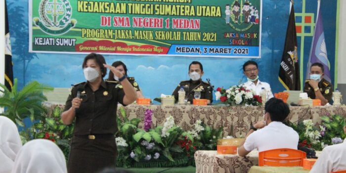 MEDAN| Penyuluhan Hukum Kejaksaan Tinggi Sumatera Utara dengan Program Jaksa Masuk Sekolah (JMS) di SMA Negeri 1 Medan Jalan T Cik Ditiro Medan, Rabu (3 /2/2021) mulai jam 10.00 sd 11.30 wib, menghadirkan pemateri Juliana PC Sinaga dan moderator Ghufran.