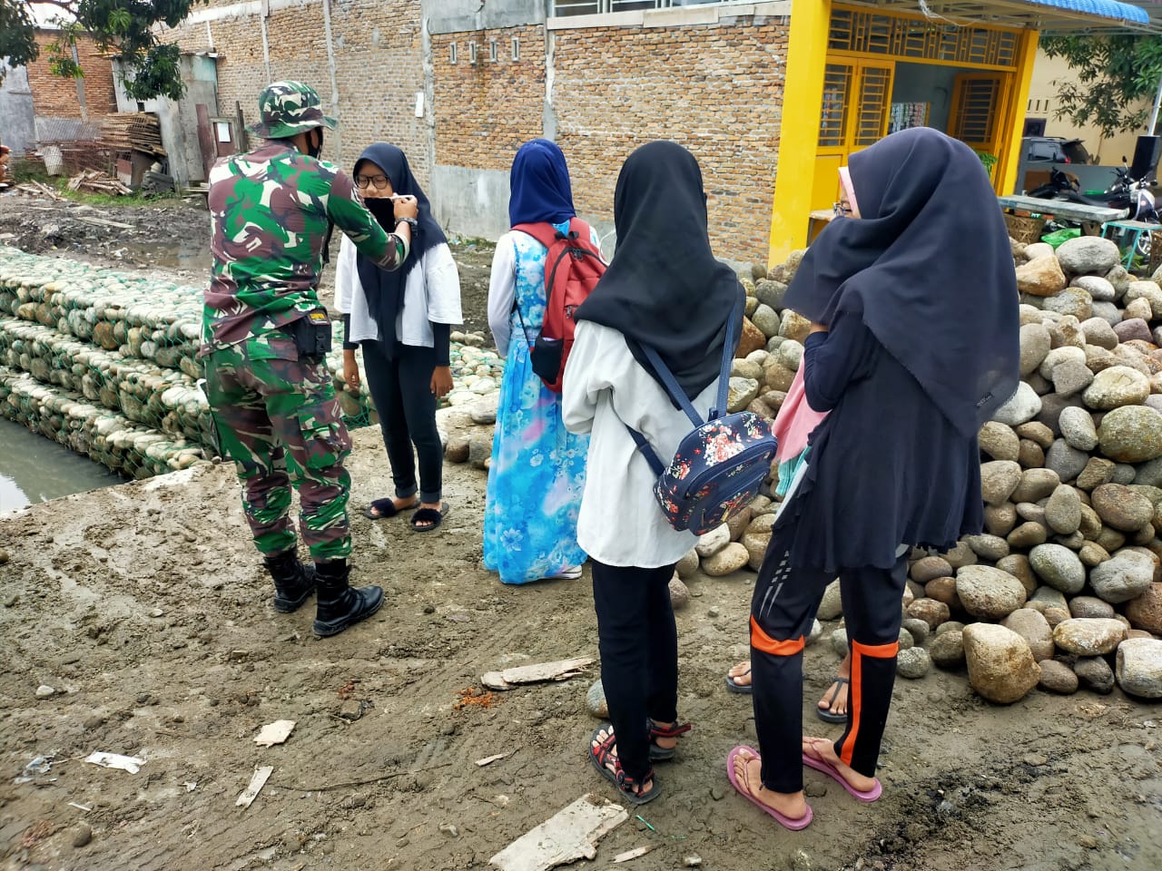 Pada saat ada beberapa orang warga yang kebetulan lewat melintasi proyek pembangunan bronjong TMMD ke 109 Kodim 0201/BS Serma Edy Syahputra mendapati ada warga yang tidak mengenakan masker.