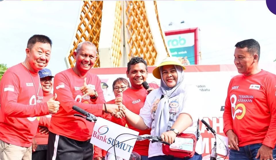 LABUHANBATU I Mewakili Bupati Labuhanbatu, Asisten I Drs H Sarimpunan Ritonga melepas peserta jalan sehat memperingati HUT Palang Merah Indonesia (PMI) ke-80, di Kabupaten Labuhanbatu, diselenggarakan oleh PMI Labuhanbatu bertempat di Bundaran Simpang Enam, Kecamatan Rantau Utara. Minggu (21/9/2025).