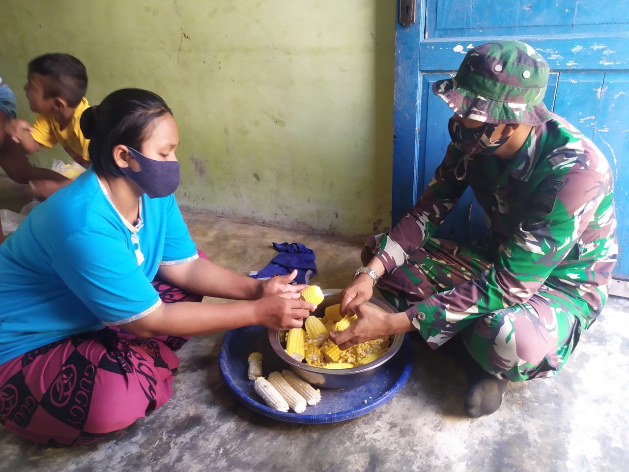 Dalam hal ini Serda Mahendra personil Satgas TMMD ke-109 menyambangi ibu Mariamah umur 29 thn seorang pengrajin jagung di Kelurahan Tanah 600 Kecamatan Medan Marelan
