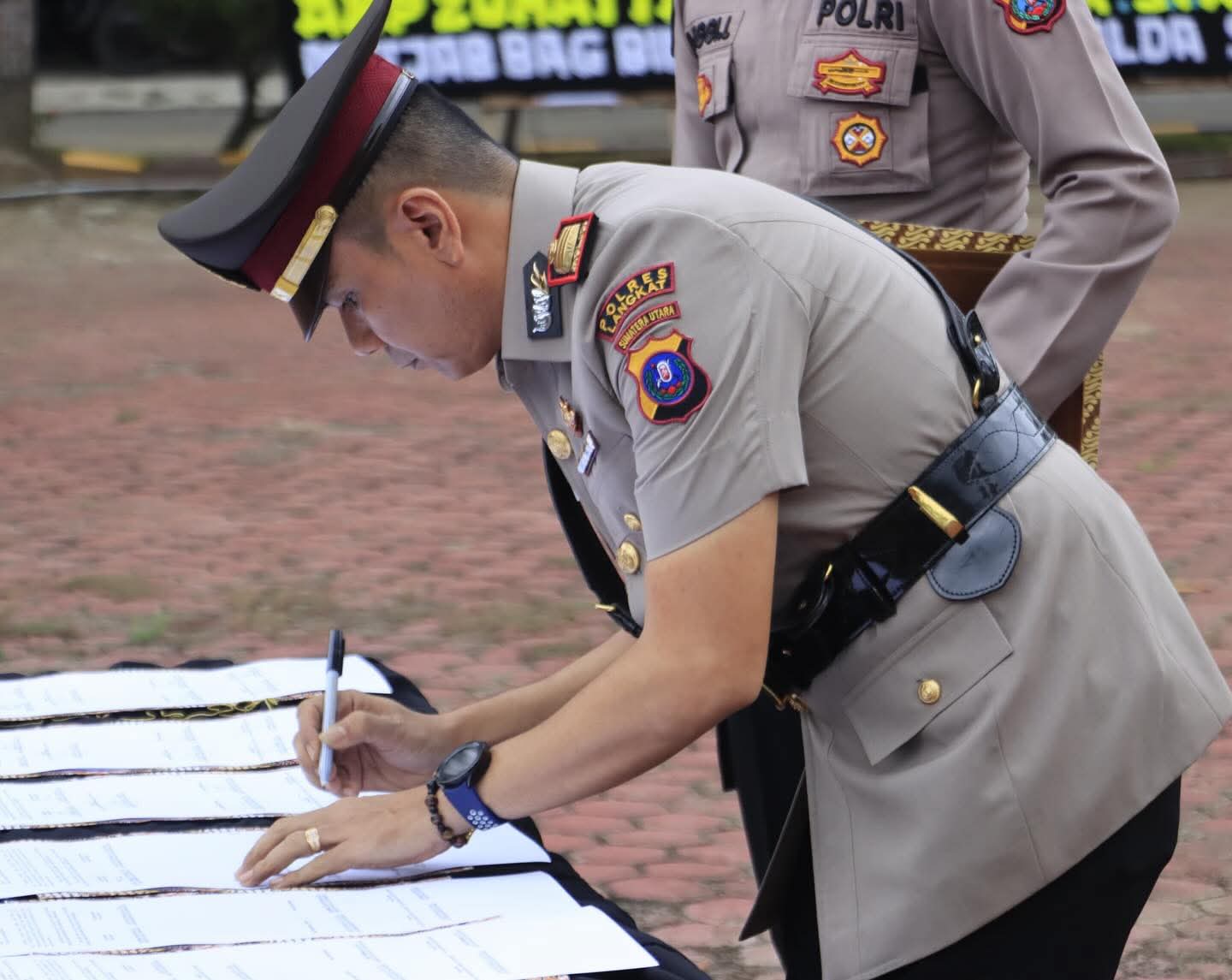 Upacara serah terima jabatan (sertijab) yang digelar di Lapangan Jananuraga Mapolres Langkat Jalan Proklamasi tersebut, dipimpin langsung Kapolres Langkat AKBP David Triyo Prasojo, Jumat (17/4/2026).