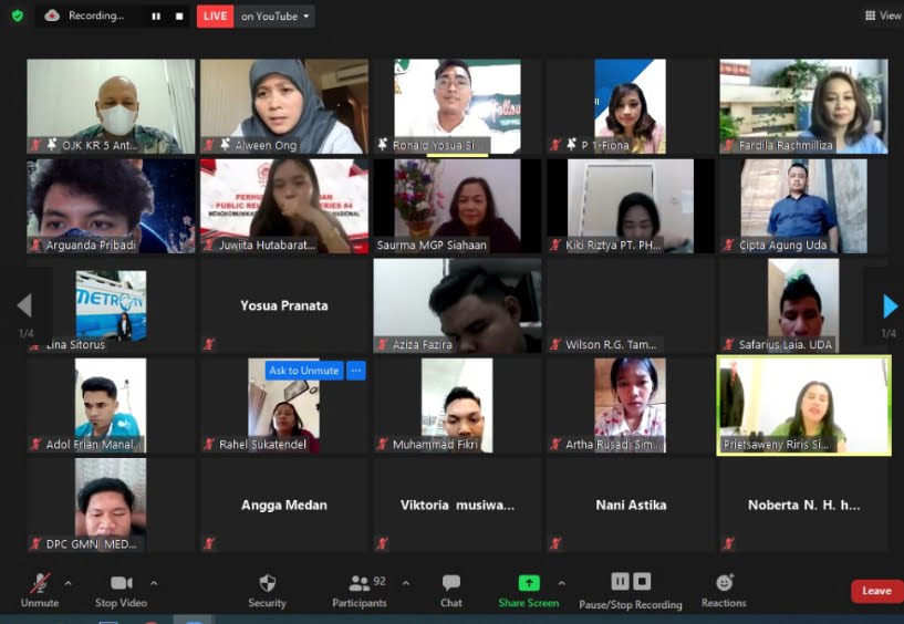 MEDAN I Badan Pengurus Cabang (BPC) Perhimpunan Hubungan Masyarakat (Perhumas) Medan bersama Perhumas Muda Medan menggelar Perhumas Muda Medan Public Relations (PMM PRTS) #Seri 4 dengan tema “Mengkomunikasikan Pemulihan Ekonomi Nasional di Sumatera Utara” melalui aplikasi zoom. Kamis, (24/6/2021).
