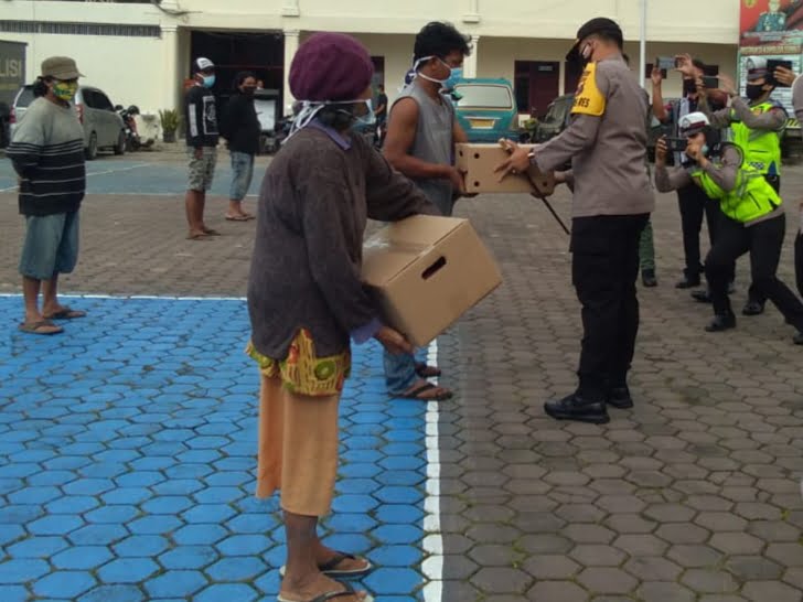 TANAH KARO | Sat Lantas Polres Tanah Karo menggelar Bakti Sosial (Baksos) untuk warga kurang mampu yang dilaksanakan di halaman Mapolres Tanah Karo jalan Veteran Kabanjahe, Kamis (17/9/2020).