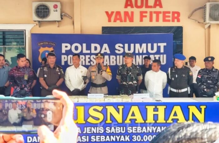 Kapolres Labuhanbatu, AKBP Wahyu Endrajaya mengatakan, barang bukti yang dimusnahkan terdiri dari sabu-sabu seberat 982,86 gram yang dibungkus plastik warna hijau merek “chinese of tea”, kemudian sabu-sabu seberat 29.994,6 gram dalam 30 plastik bertuliskan “daguanyin”, serta 29.826 butir pil ekstasi yang dikemas dalam enam bungkus plastik.