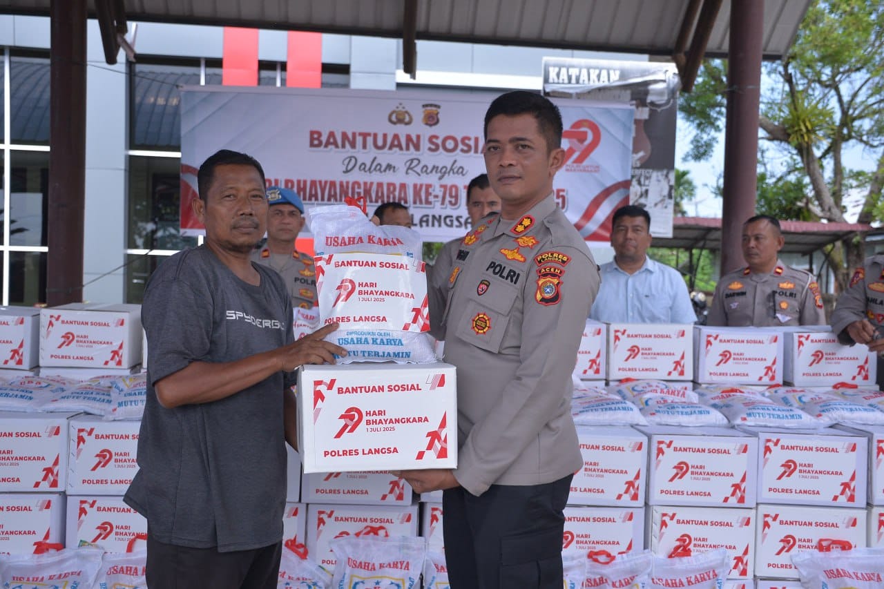 LANGSA | Menyambut Hari Bhayangkara ke-79 yang jatuh pada 1 Juli 2025, Kepolisian Resor (Polres) Langsa menggelar kegiatan bantuan sosial dengan membagikan sebanyak 200 paket sembako kepada masyarakat.