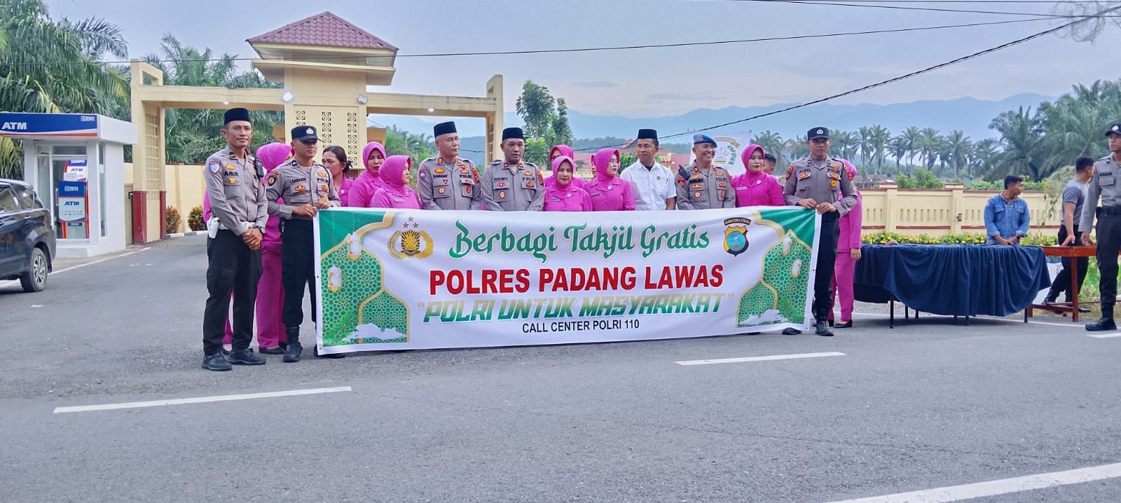 PALAS | Polres Padang Lawas (Palas) jajaran Polda Sumut menggandeng jajaran Cabang Bhayangkari Padang Lawas menggelar kegiatan bagi – bagi paket takjil gratis kepada masyarakat dan pengguna jalan yang melintas di sekitar jalan provinsi Lintas Sumatera Utara (Jalinsum) Sibuhuan – Sosa, Desa Bulu Sonik, Kecamatan Barumun, Kamis ( 5/3) sore.