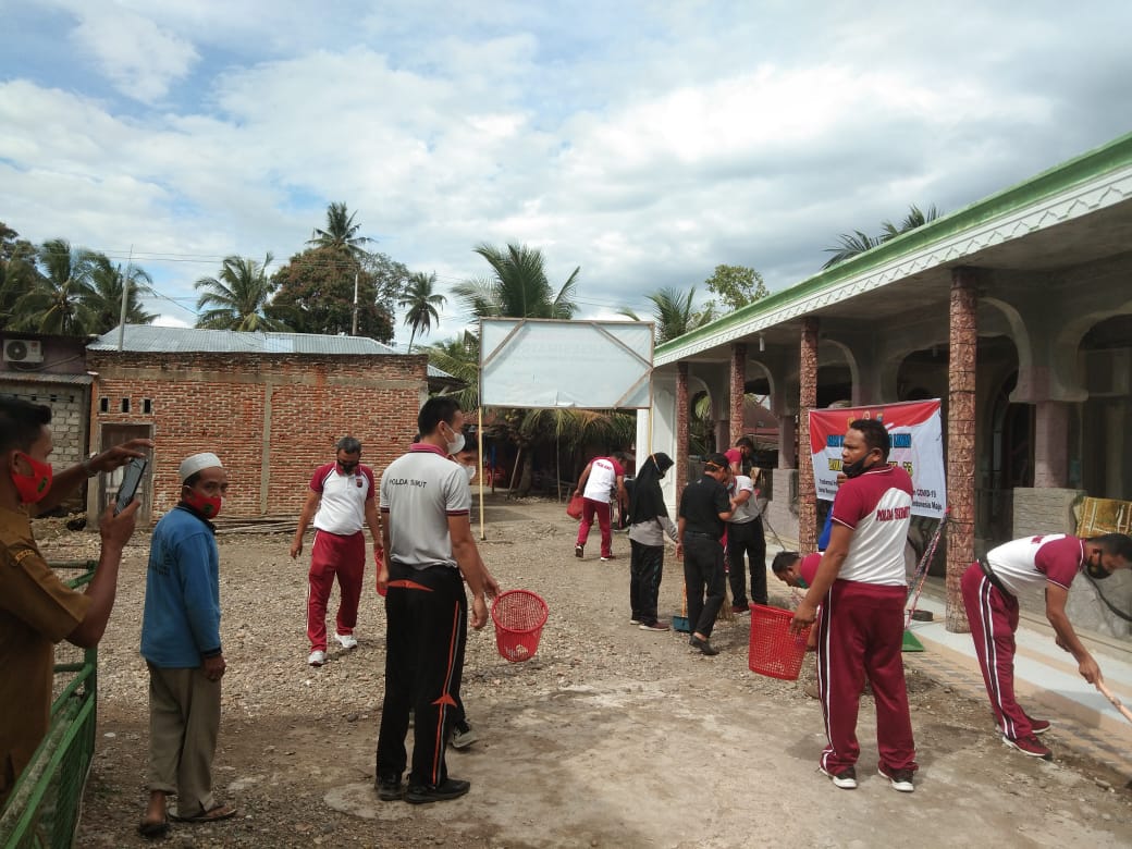 PALAS I Menjelang HUT ( Hari Ulang Tahun) Polri ke -75, tahun 2021 ini, Polres Padang Lawas ( Palas) menggelar kegiatan ( Giat) bakti sosial ( Baksos) melakukan pembersihan Masjid Jami Al Muhsinin, bersama masyarakat dan Pemerintah Desa ( Pemdes), di Desa Arse Simatorkis, Kecamatan Barumun, Selasa (29/6/2021) siang.