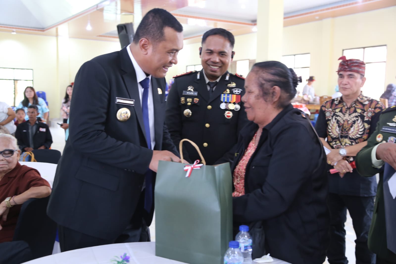 Di akhir sambutannya, Bupati Toba didampingi Wabup Audi Murphy O. Sitorus beserta jajaran Forkopimda memberikan cenderamata dan tali asih kepada para veteran dan keluarga yang hadir.