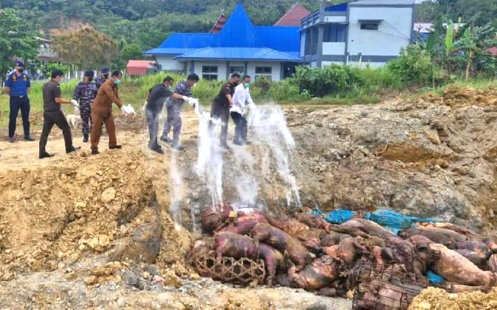“Semua babi tersebut dimusnahkan secara total hari ini,” ucapnya.