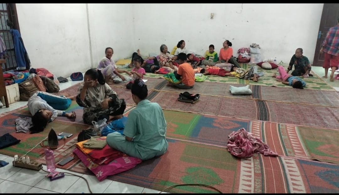 “Yang ngungsi di Kantor Desa aja ada 100 KK, lain yang di Dusun lagi, adalah sekitar 300 KK”. Ucap Muliono.