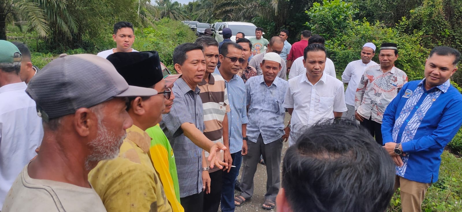 Bacabup Abdya H Salman Alfarisi ST MM yang didampingi anggota DPRK Nurdianto, Agusri Samhadi SHi, anggota DPR Aceh terpilih Usman IA mantan anggota DPRK H. Munir H.Ubit,Iksan Jufri dan masyarakat tani sawit saat meninjau lokasi di Gampong Blang Makmur