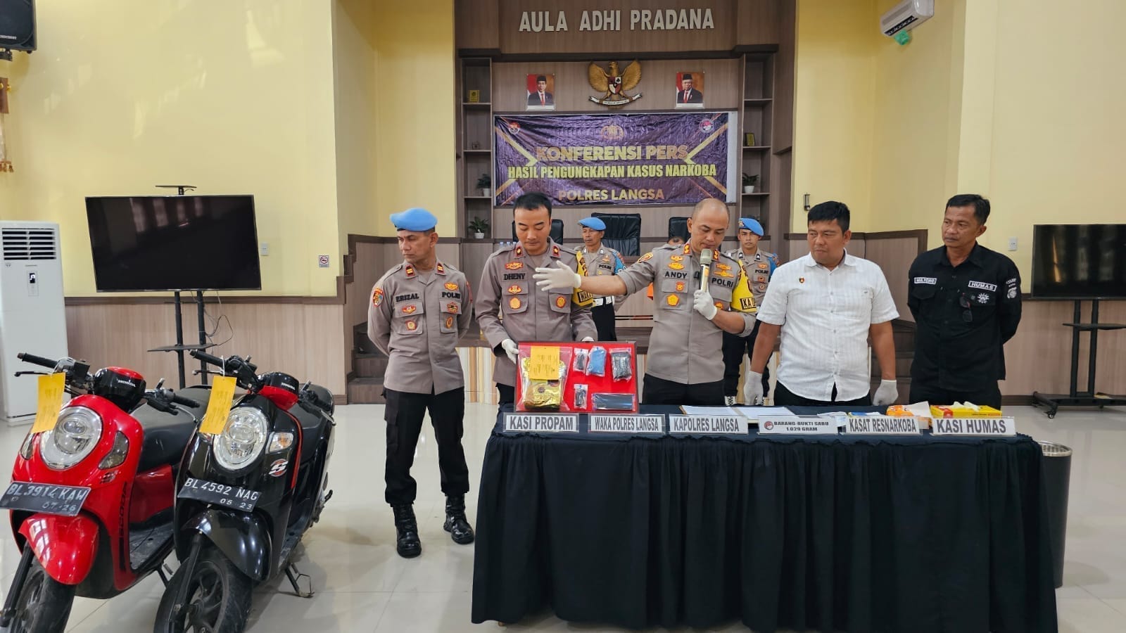 Hal tersebut disampaikan, Kapolres Langsa, AKBP Andy Hermansyah didampingi Kasat Resnarkoba, AKP Mulyadi, saat konferensi pers, Kamis, 2 Mei 2024.