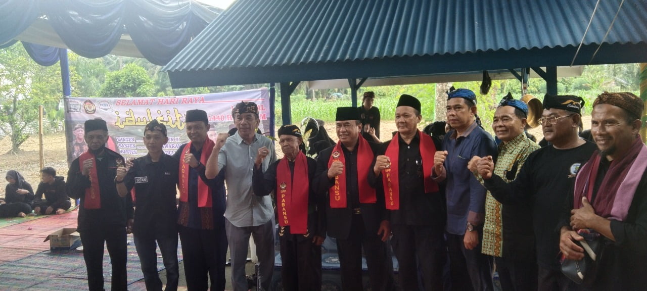 Sebelum menyampaikan sambutannya Ketua Pabansu (Paguyuban Banten Sumatera Utara) Enjang Bahri yang didampingi Sesepuh Banten Kota Binjai Abah Hasim memberikan bantuan uang tunai untuk pembangunan rumah adat Banten sebesar Rp10 juta.