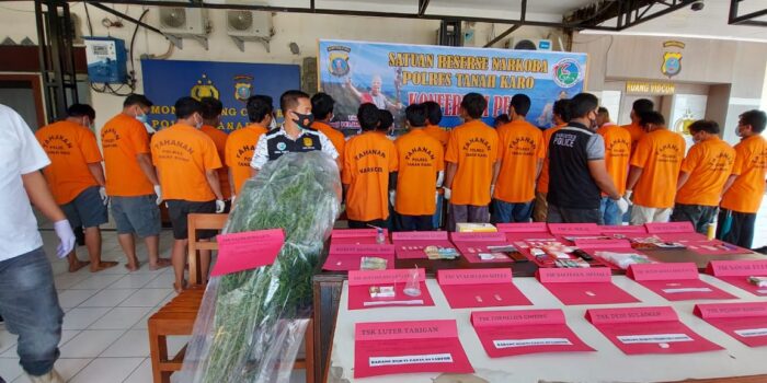 Hal itu dikatakan Kapolres Tanah Karo AKBP Yustinus Setyo Indryono SIK, didampingi Wakapolres Kompol Aron Siaahan, Kasatnarkoba AKP Hendri Davit B Tobing saat menggelar Konfrensi Pers Operasi Antik Narkoba 2021, Rabu (17/2/2021) di Mapolres Tanah Karo Jalan Veteran Kabanjahe.