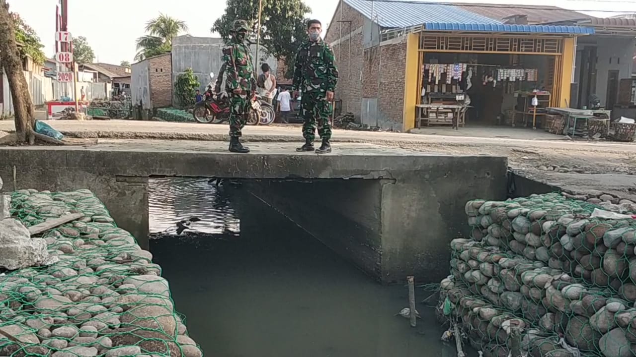 Perwira Pengawas (Pawas) TMMD Ke-109 Kodim 0201/BS, Kapten Czi. Sony Ginting, bersama dengan Kaur Komsos Kodim 0201/BS, Kapten Kav. Ando Sinaga, tampak sedang melakukan pengecekan fisik bangunan beronjong di Pasar I, Tanah 600, Medan Marelan, Rabu (30/9/2020).