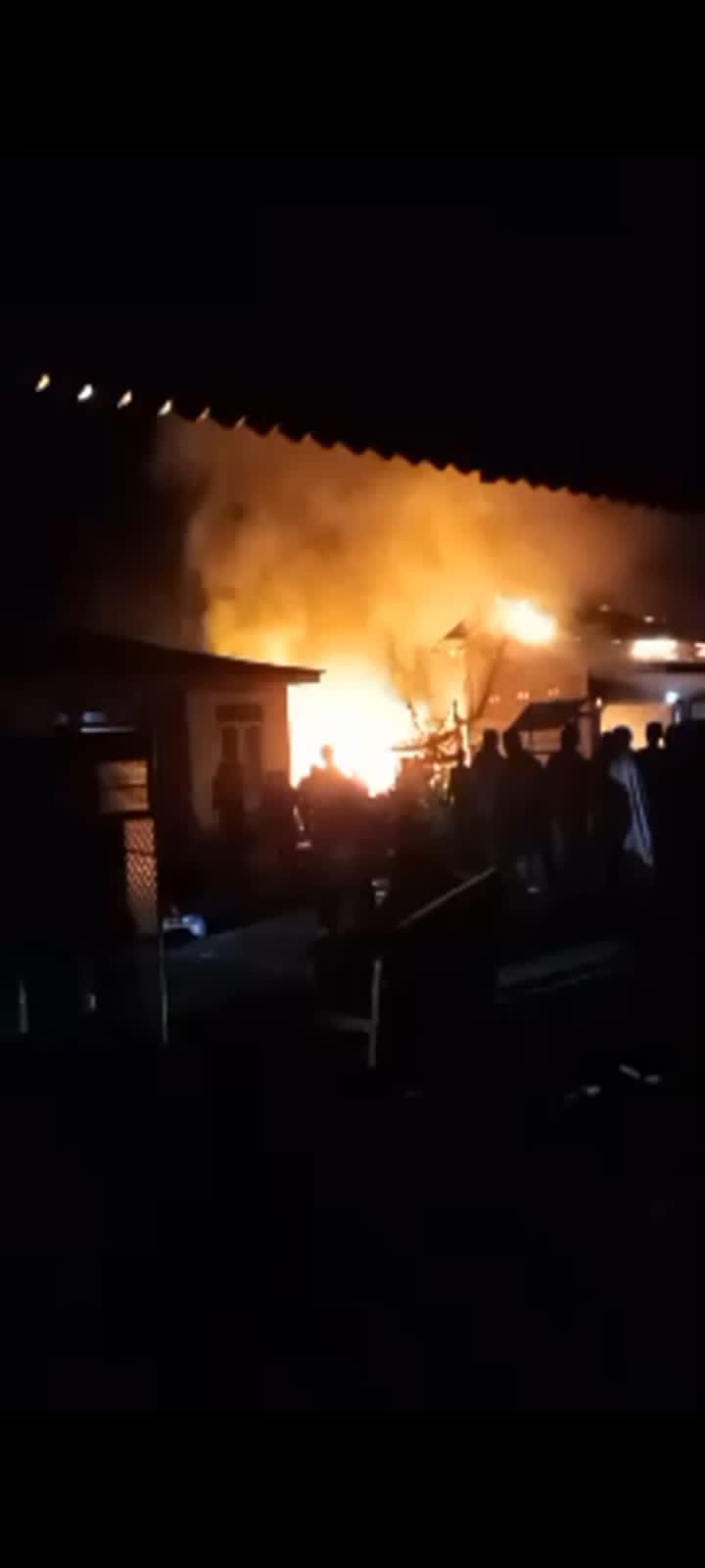 LINGGABAYU |Satu unit Kios yang menjual obat obatan dan pakaian yang terbuat dari beton atau permanen dan bagian belakang Rumah berdinding Papan dilalap sijago merah di Desa Perbatasan Kecamatan Linggabayu Kebupaten Mandailing Natal,Minggu (29/5/2022).