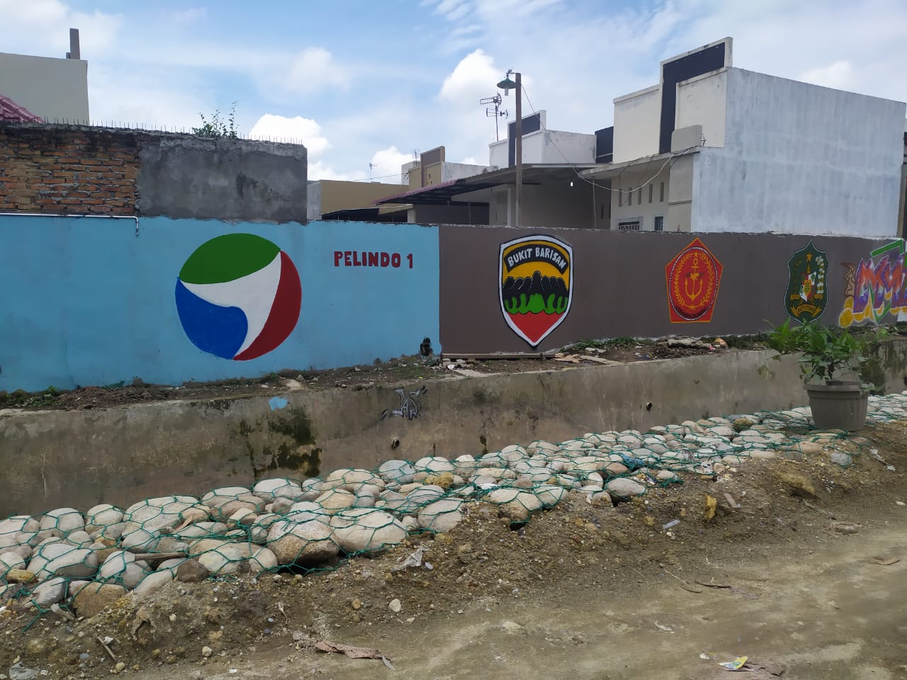 Terlihat dari kejauhan,warga setempat dengan seorang anggota Babinsa Serda Mahendra,warga tadi sedang mengamati simbol-simbol yang berkesan dan menikmati pemandangan yang berbeda disepanjang Sei Merah Gg. Pinggir Kelurahan tanah-600.