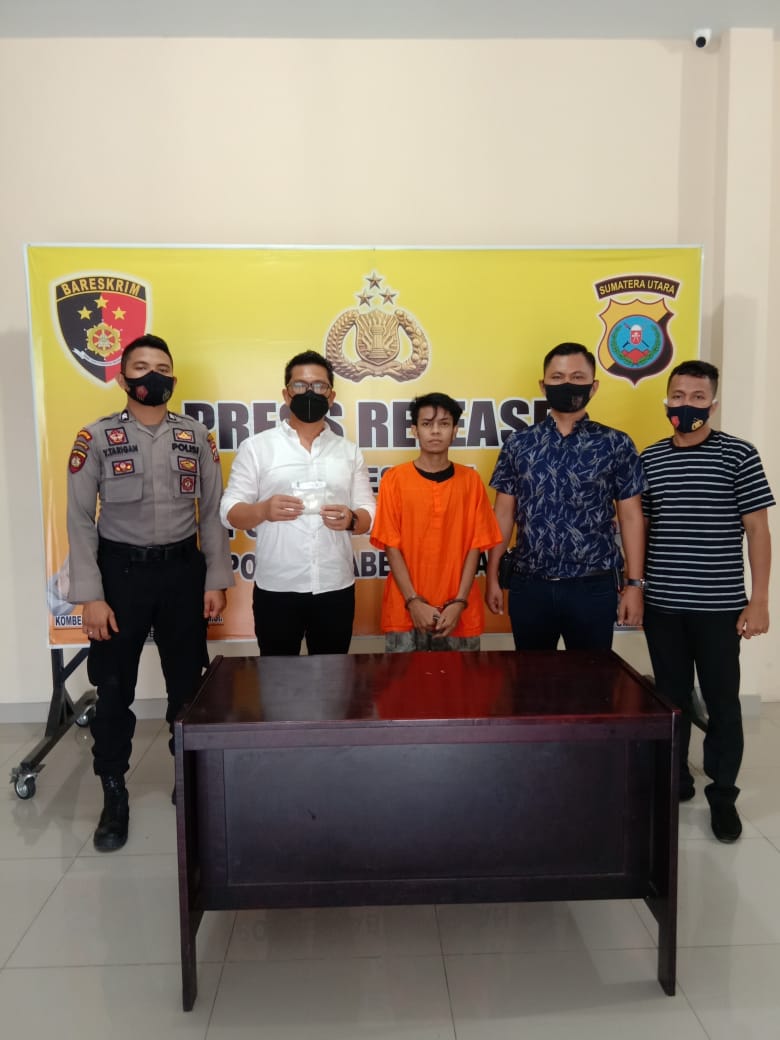 Tersangka Riski Ananda saat diamankan Polsek Patumbak. (orbitdigitaldaily.com/Diva Suwanda)