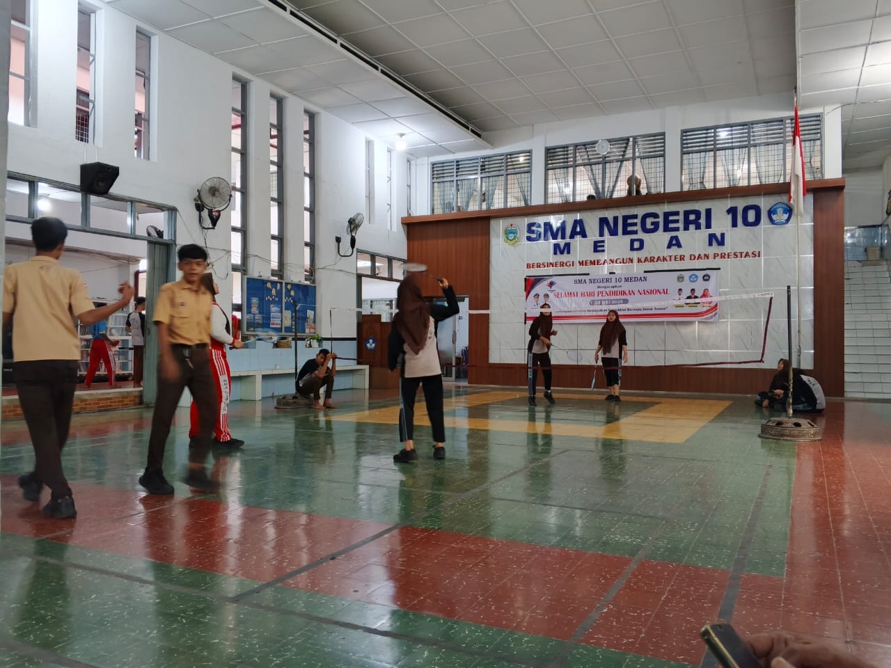 Selanjutnya Tim Wardiksu menyaksikan para siswa/i sedang bermain badminton dan tenis meja dalam sebuah ruangan. Memperhatikan situasi dan kondisi saat itu, terlihat SMAN 10 Medan hanya punya sarana dan prasarana olah raga di dalam ruang atau tidak di luar ruangan selayaknya sekolah-sekolah lain pada umumnya. Letak atau posisi sekolah tersebut, berada diantara pemukiman penduduk.