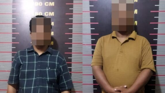 LANGKAT | Dua dari empat pria berinisial A dan J, pelaku pungutan liar (pungli) terhadap…