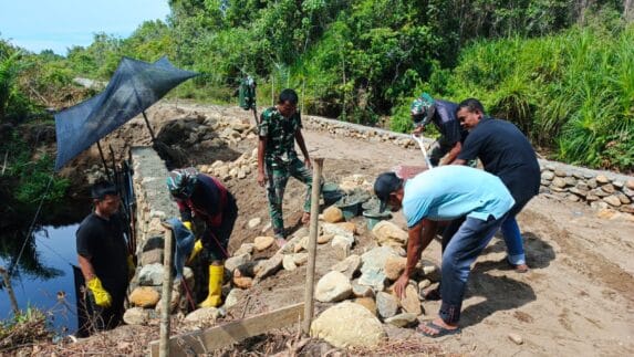 ACEH SELATAN | Tak peduli dengan sengatan matahari TNI dan warga kebut pembangunan jembatan Aramco…