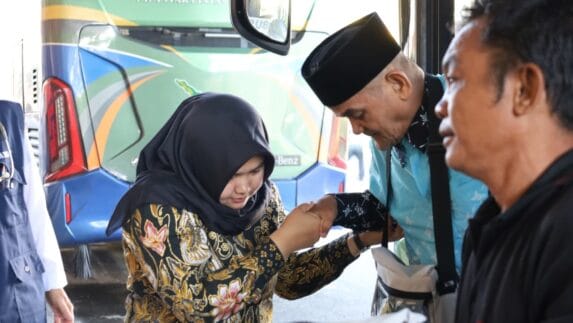 MEDAN | Wakil Bupati Mandailing Natal (Madina), Atika Azmi Utammi Nasution, menyambut kedatangan rombongan Jamaah…