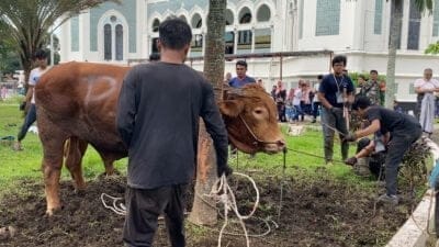 Masjid Raya Al-Mashun Medan Sembelih 14 Ekor Kurban, 3 Sapi Berjenis Limosin
