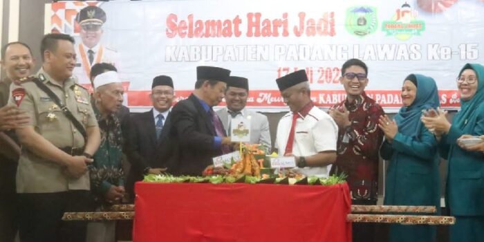 PALAS | Plt Bupati Padang Lawas (Palas) drg. H Ahmad Zarnawi Pasaribu memotong nasi tumpeng…