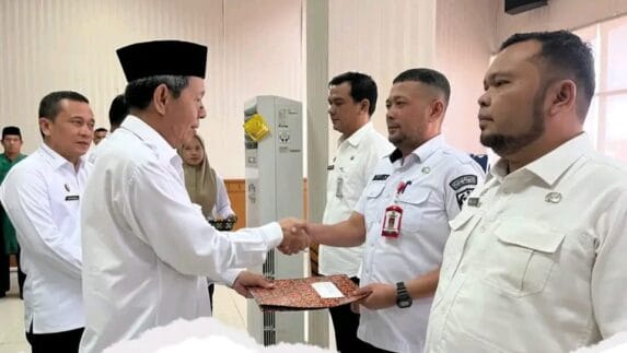 GUNUNG TUA | Wakil Bupati Padang Lawas Utara Basri Harahap menyerahkan Surat Keputusan kepada 12…