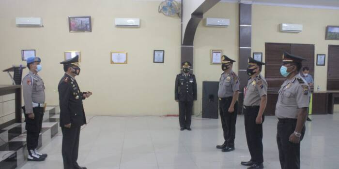 SERGAI| Kapolres Sergai AKBP Robin Simatupang memimpin Upacara Korps Raport (Penghargaan) kenaikan pangkat kepada 3…