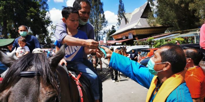 TANAH KARO- Gegara lupa pakai masker seorang pendunggang kuda yang tandem menunggang bersama anaknya, terpaksa…