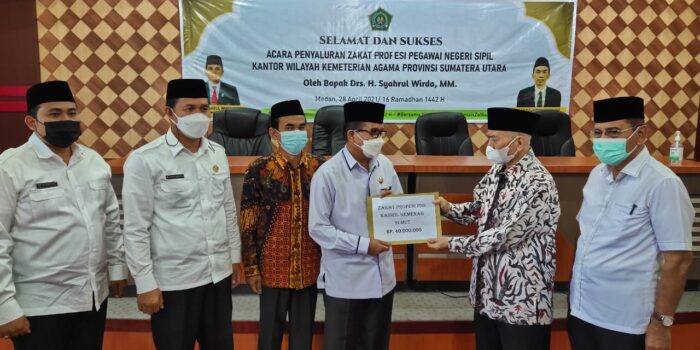 MEDAN | Kakanwil Kemenag Sumut Drs H Syahrul Wirda MM menyalurkan Zakat Profesi ASN Kanwil…