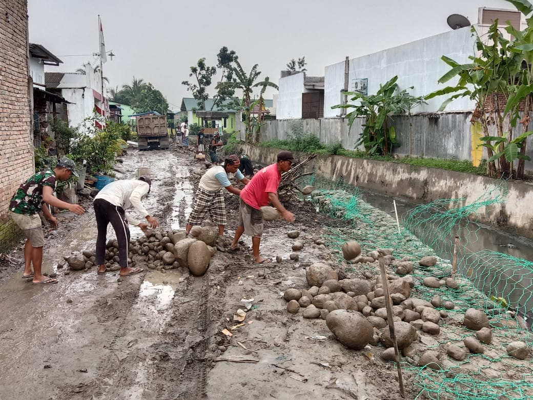 MEDAN – Hingga hari ke-11, tahap demi tahap pembangunan bronjong penahan banjir di Sei Merah, Lk IV, Jln Marelan VII, Kelurahan Tanah Enam Ratus, Kecamatan Medan Marelan, Kota Medan, terus dikebut Satgas TMMD ke-109 Kodim 0201/BS.