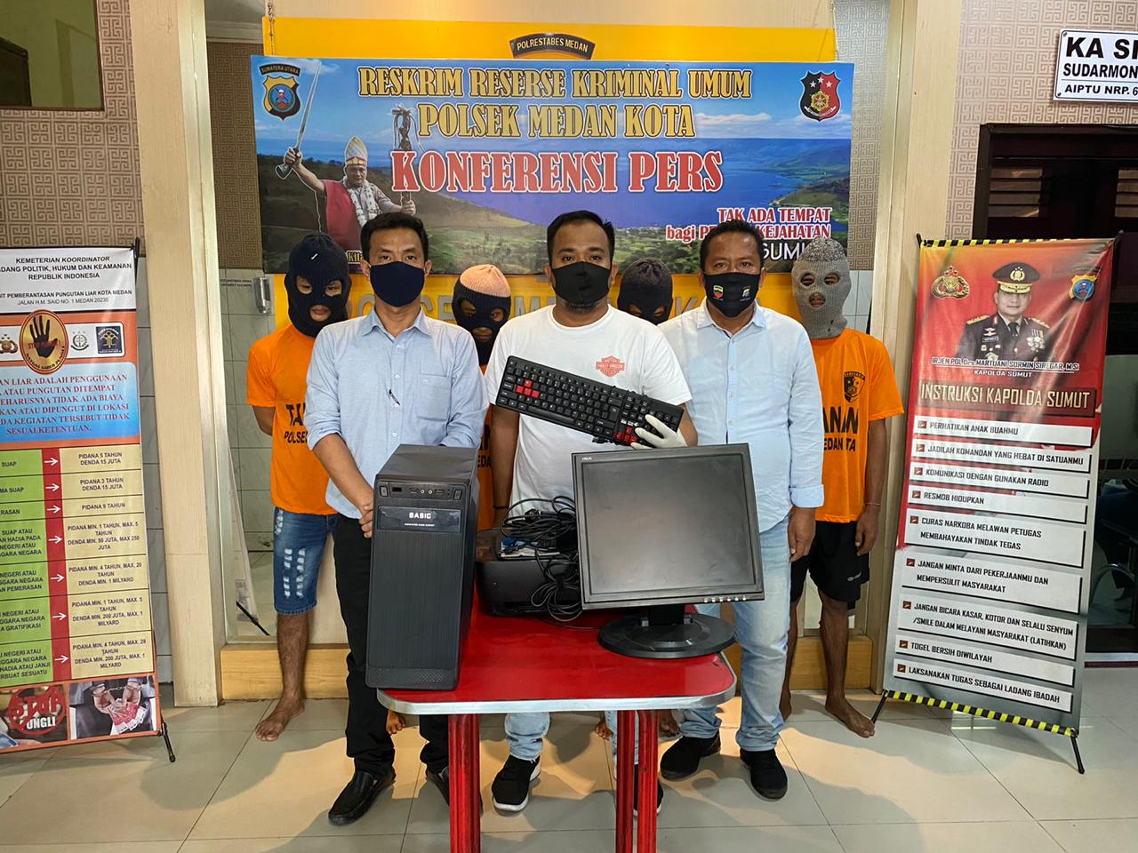 Dalam penangkapan itu Tekab Polsek Medan Kota mengamankan satu unit monitor komputer, CPU dan printer merk HP. (Diva Suwanda)