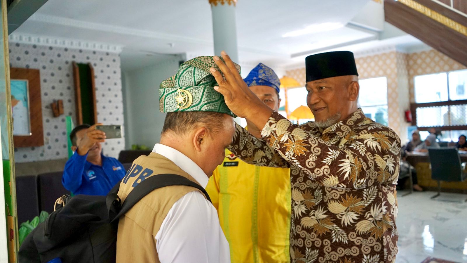 Plt Bupati Langkat H Syah Afandin SH melalui Asisten Adm Ekbangsos H.Shukyar Mulyamin,S.Sos,M.Si di dampingi oleh Plt Kalakhar BPBD Langkat H.M.Ansyari,M.Kes menyambut kedatangan Bapak,Yus Rizal, DCN, M.Epid (Direktur Fasilitasi Penanganan Korban dan Pengungsi BNPB Pusat) dan Drs. Gatot Satria Wijaya S., M.Si (Kasubdit Fasilitasi Penyelamatan dan Evakuasi BNPB Pusat) dengan pemakaian tanjak dan pencak silat