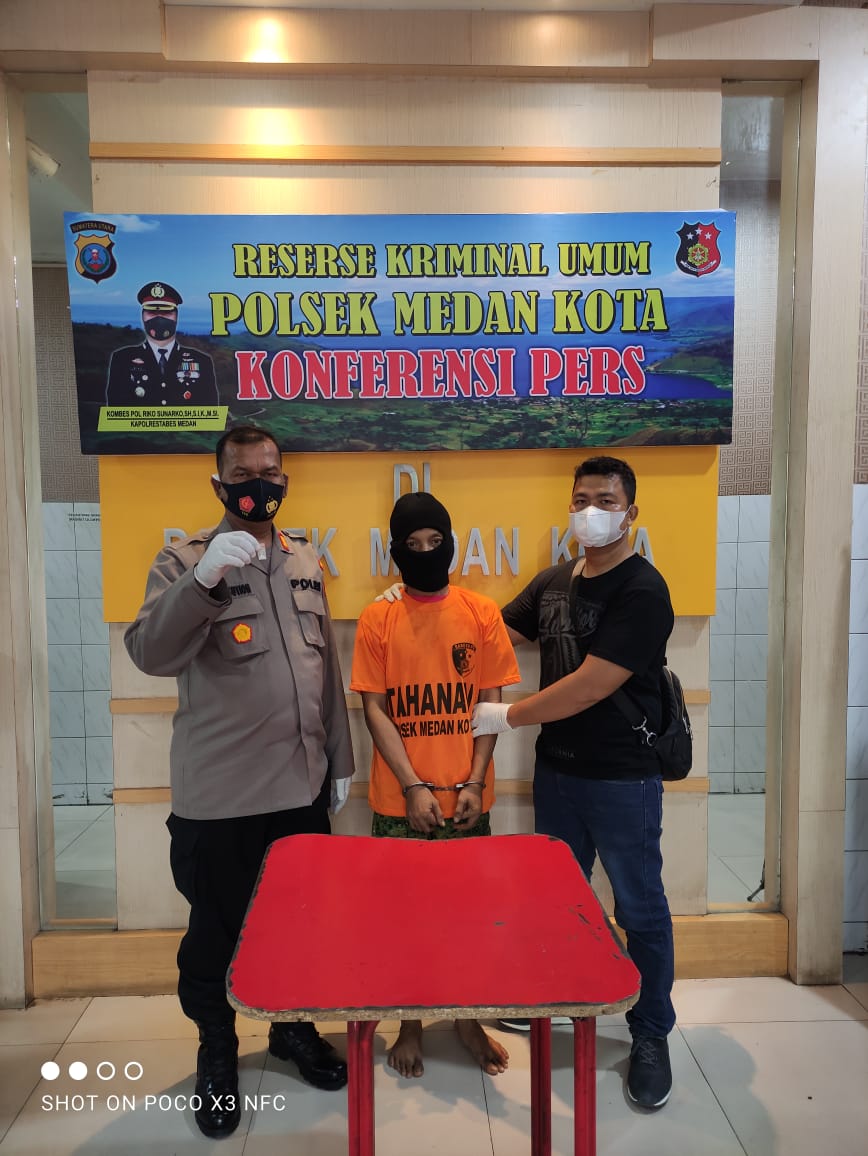 Kapolsek Medan Kota Kompol Rikki Ramadhan, melalui Kanit Reskrim Iptu Nova Indra Pratama kepada wartawan, Kamis (1O/6/2O21) menjelaskan kronologi penangkapan tersangka.