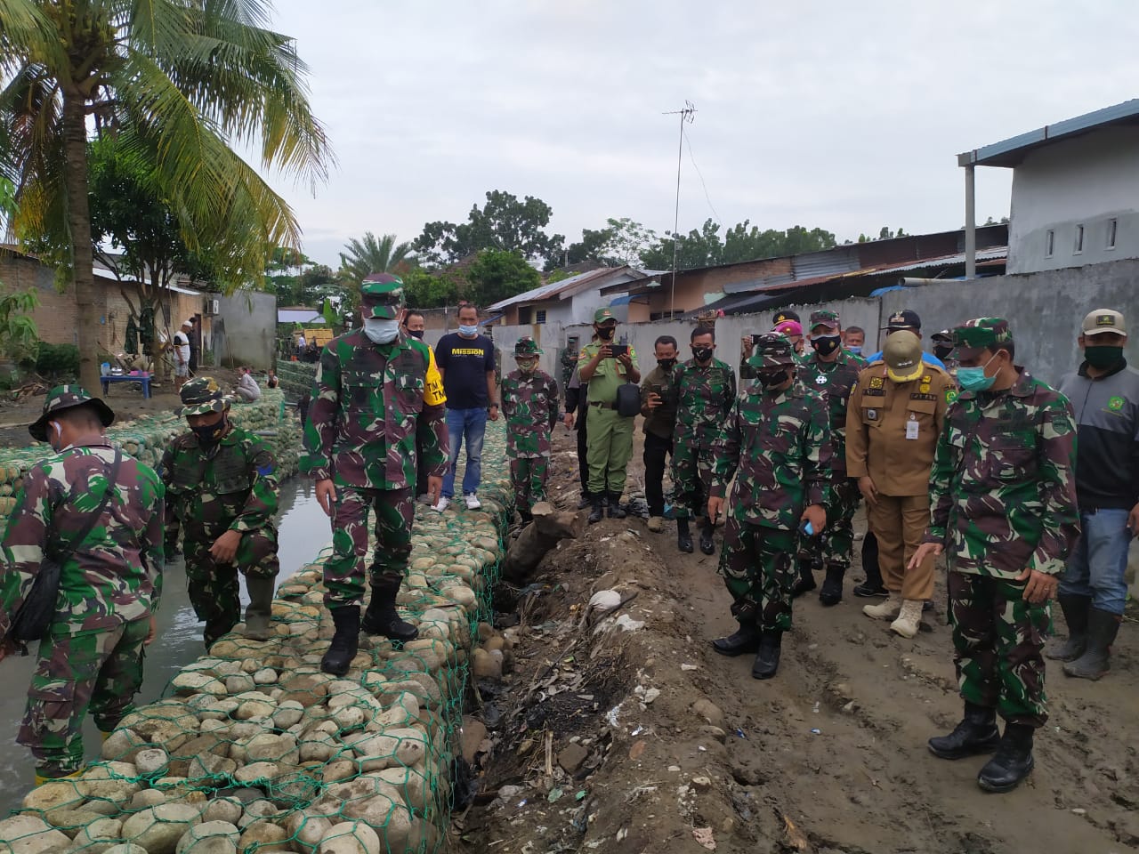 Dalam kunjungannya Waaster Panglima TNI Brigjen (Mar) TNI Purnomo yang juga ketua tim Wasev TMMD didampingi oleh Aster Kodam I/BB Kol Inf. G. Simatupang, Danyon Marhnlan I/Belawan, Camat Medan Marelan M. Yunus Serta Dan SSK TMMD Lettu Czi Burhan Ginting meninjau pembangunan bronjong penahan air Sei. Merah.