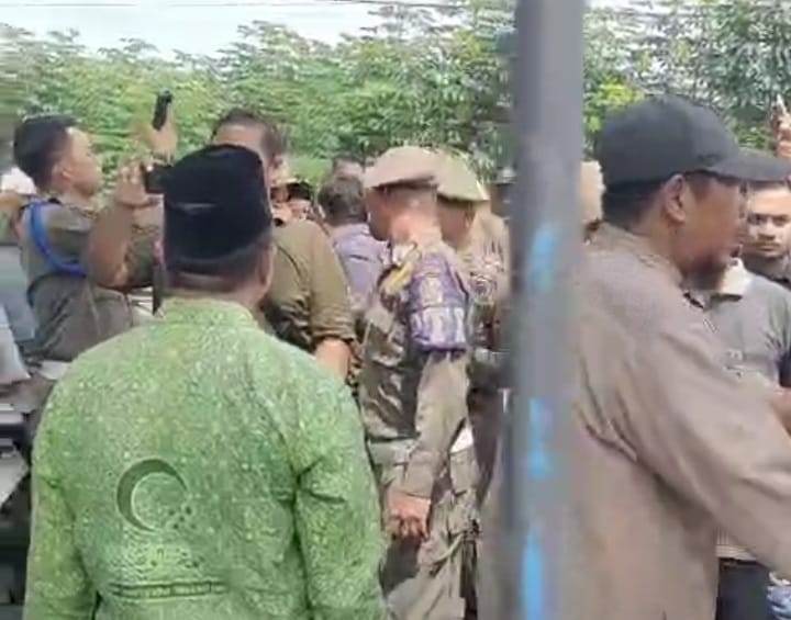Sempat terjadi dialog antara Yudi Hilmawan dengan sejumlah warga yang diduga merupakan pimpinan dan guru MTs Al Washliyah Patumbukan.