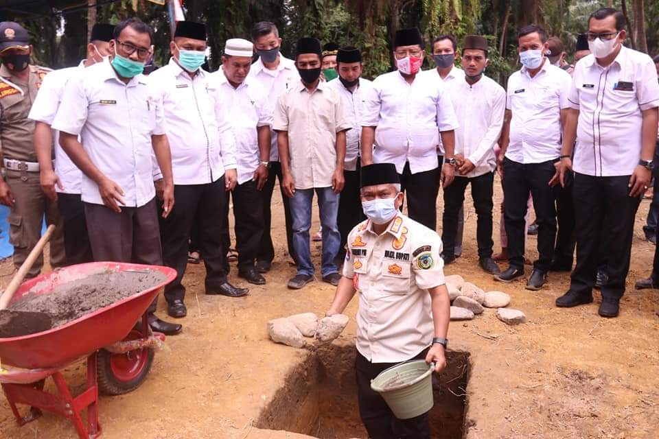 PADANGLAWAS | Wakil Bupati Padang Lawas ( Palas) drg. H Ahmad Zarnawi Pasaribu ( H AZP) meletakkan batu pertama pembangunan gedung Masjid An Nur, di Desa Banua Tonga, Kecamatan Barumun Selatan, Palas, Rabu (10/2/2021).