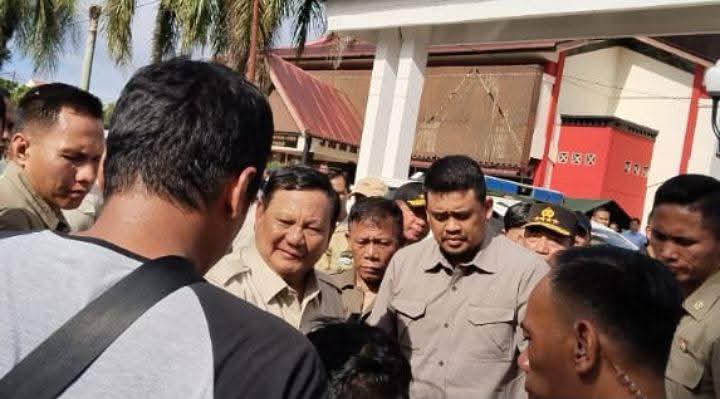 ‎Presiden RI Prabowo Subianto turut didampingi Panglima TNI Jenderal Agus Subiyanto, Kapolri Jenderal Listyo Sigit Prabowo, dan Gubernur Sumatera Utara Bobby Nasution, Sekretaris Kabinet Teddy Indra Wijaya